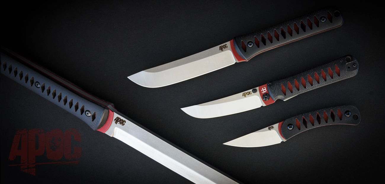 CAS expands the selection for APOC with our new Fallout Series of knives and survival tools designed by Jason Breeden. Featuring blades in D2 and 1075 steel in a two-tone finish with a unique mix of pierced black canvas micarta and APOC Red G10 liners that allows for a superior grip. APOC Survival Tools increases the selection of utilitarian implements from large to small that will check all the boxes. The APOC Fallout Series blasts the survival landscape with these exciting new tools.