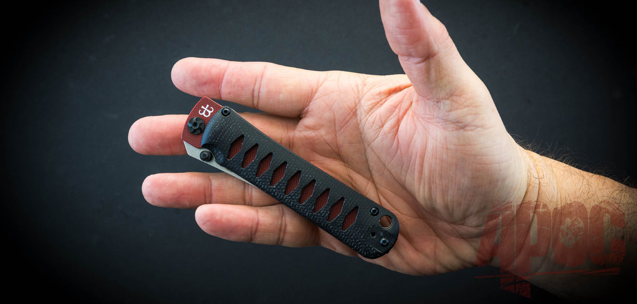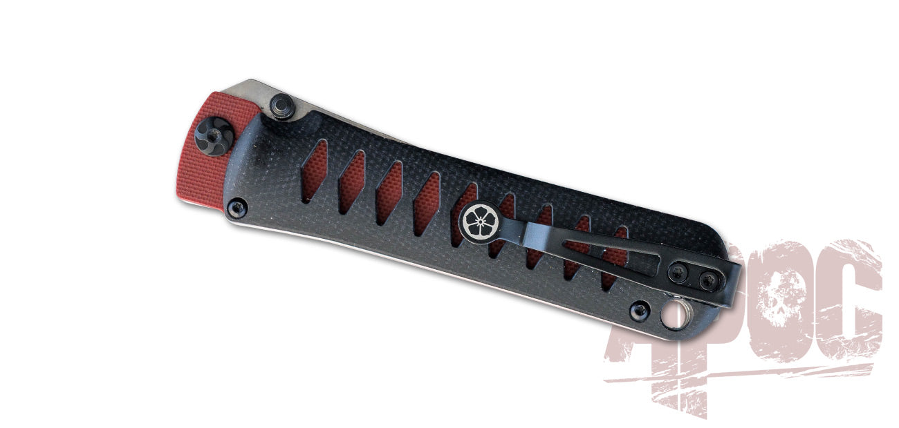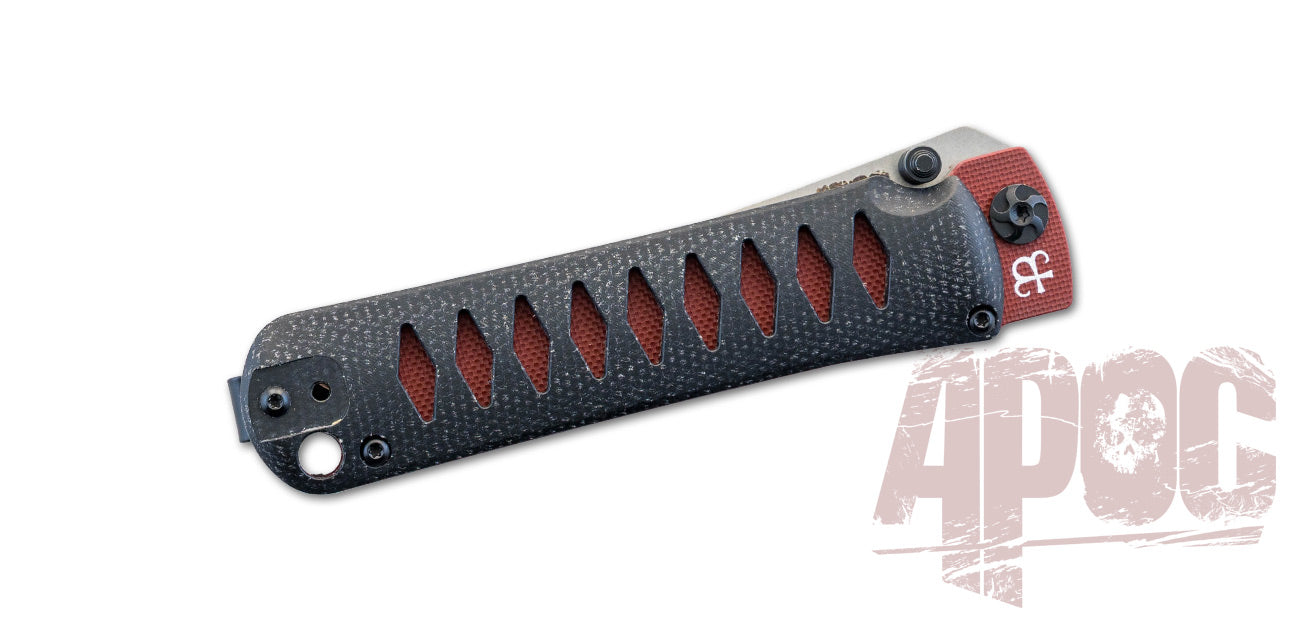 - Pierced Black Canvas Micarta over APOC Red G10 Liners